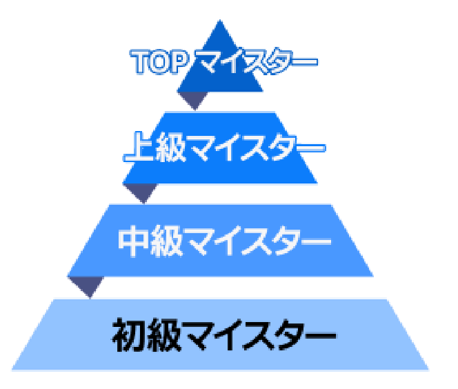 マイスターには Top から初級までの 4 段階の階級を設定いたしました。各階級は、インテルが設定した講座やテストを修了することで認定を受けることができます。